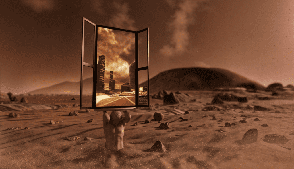 Una piazza Gae Aulenti di Milano rovente e assolata come una città texana, una Giacarta completamente sommersa dall’acqua, una New York battuta da piogge monsoniche ed eventi climatici estremi: all’interno del paesaggio marziano simulato ma assolutamente fotorealistico in cui si muoveranno i visitatori sono state collocate tre finestre, che si aprono su scenari distopici sul futuro del nostro pianeta.