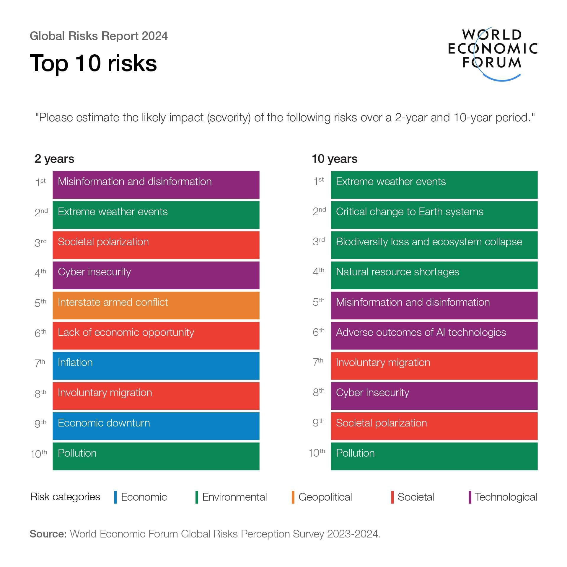 Global Risks Report 2024: disinformazione e crisi climatica in testa