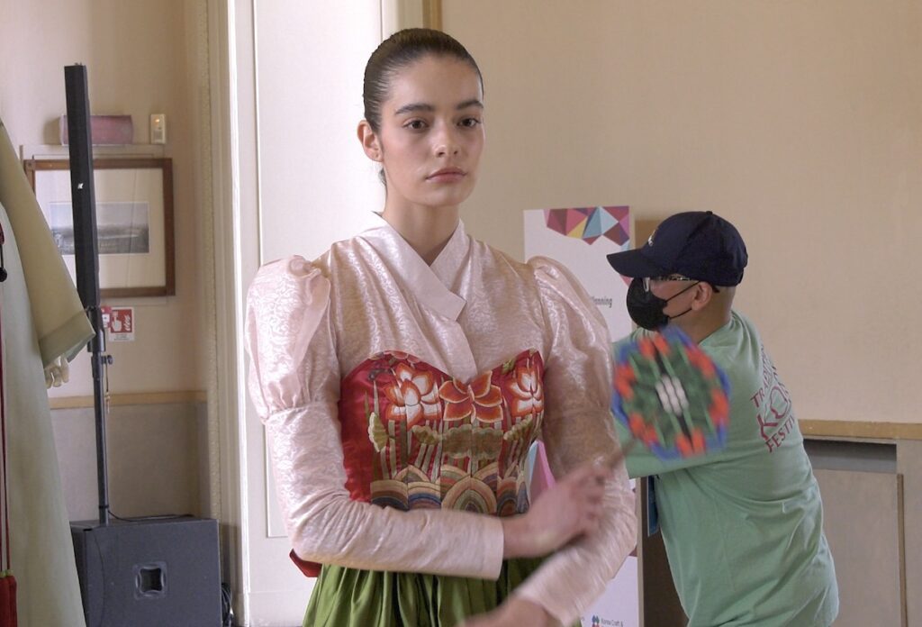 Attualmente il fenomeno della Korean Wave si sta diffondendo assieme al K-pop, all’abbigliamento coreano, eccetera. Noi stiamo facendo una mostra a Milano per la promozione dell’hanbok. In questo momento stiamo esponendo quattro diversi hanbok; abbiamo preparato abiti da matrimonio e da sera sia maschili che femminili.